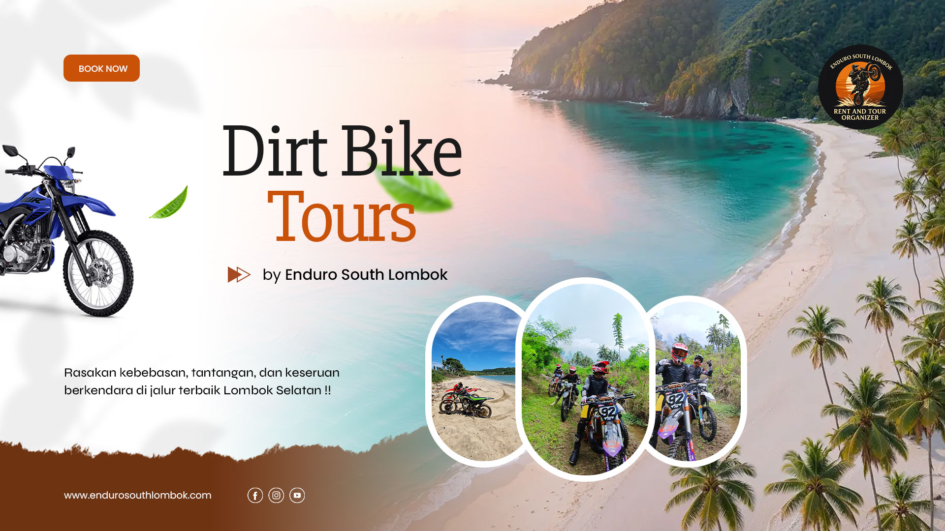 Kami adalah penyedia jasa Rent & Tour Organizer yang berfokus pada pengalaman Dirt Bike Tour dan Rental Motor di Lombok Selatan. Kami hadir untuk memberikan cara terbaik menikmati keindahan alam Lombok melalui jalur-jalur off-road yang menantang dan penuh petualangan.